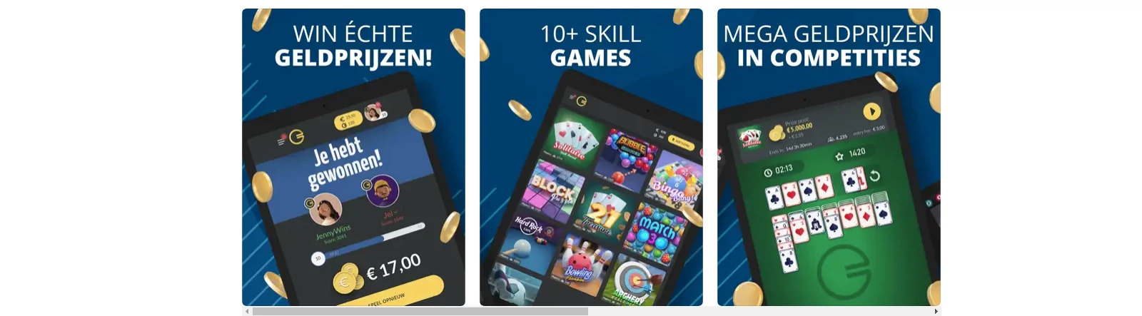 Dit kan om bijvoorbeeld 2 euro gaan per persoon maar je kunt ook hogere bedragen inzetten. Totaal komt er dus tweemaal een inzet in de geldpot. Hier gaat een kleine fee vanaf voor de ontwikkelaars van het gameplatform en wat overblijft. Zeg 3,60 euro. Dat kan de winnaar in de wacht slepen. Je mag zoveel spelletjes spelen zoals je wilt. Blijk jij goed te zijn in het spel dan kan je op een dag of in een maand hele leuke geldprijzen verdienen.